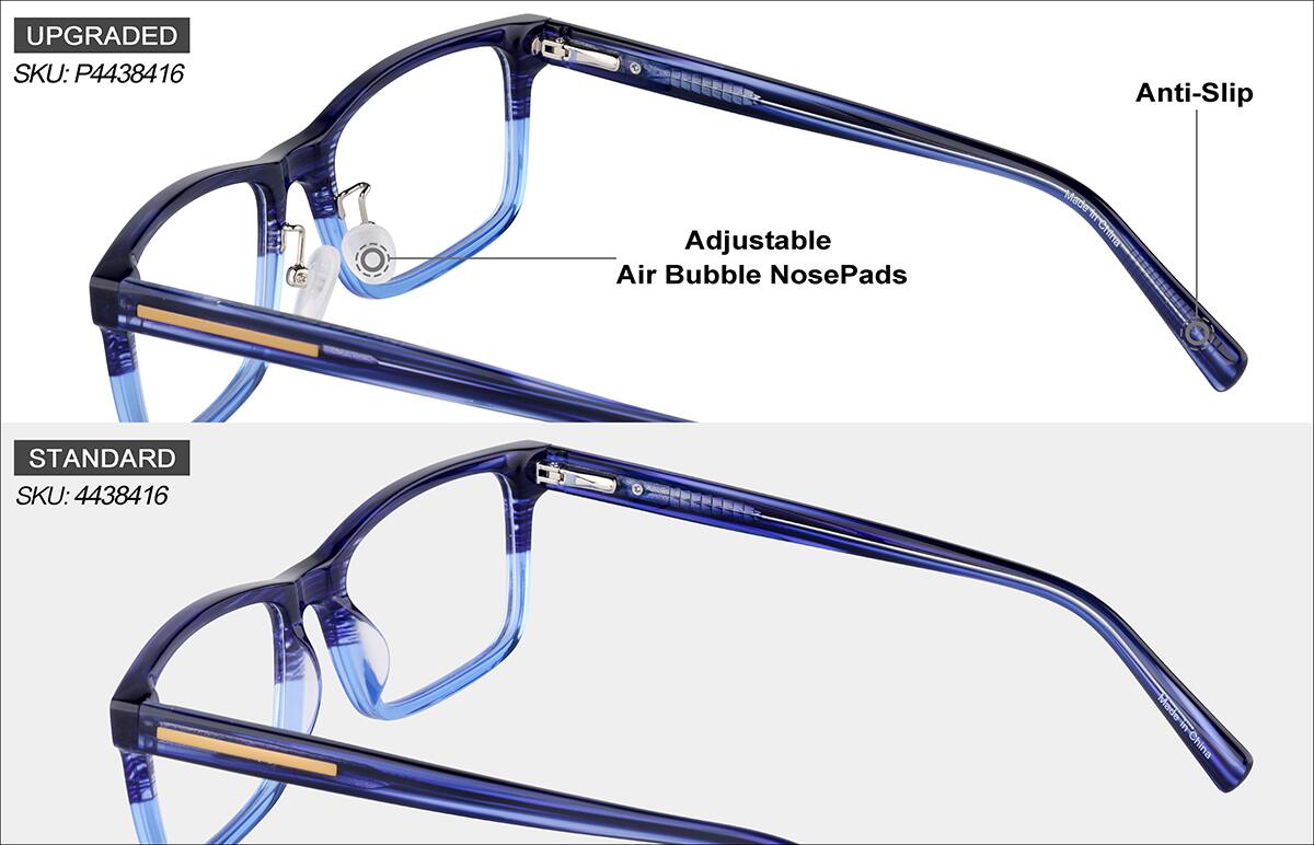 - Ajuste: Las bisagras de muelle favorecen la flexibilidad natural, mientras que las almohadillas de nariz ajustables y ajustables en el aire ayudan a mantener una comodidad estable durante el día.