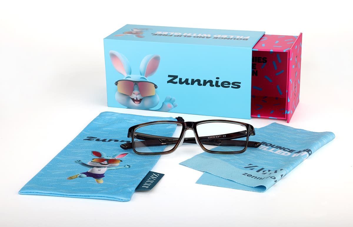 - Design: Elevate your look with this mixed material frame, featuring a bold geometric shape and distinctive layered rims. The Zunnies sports frame boasts sculpted temples, slip-free nose pads, and temple tips for ultimate comfort and performance.