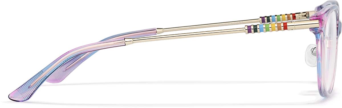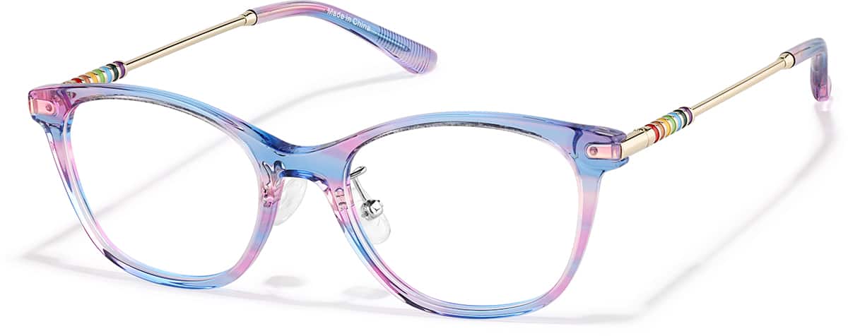 Thoughtfully paired materials deliver optimal comfort, style, and performance benefits.- Design: This frame features a stylish, versatile kids shape with painted rainbow temple detailing for a playful finish.