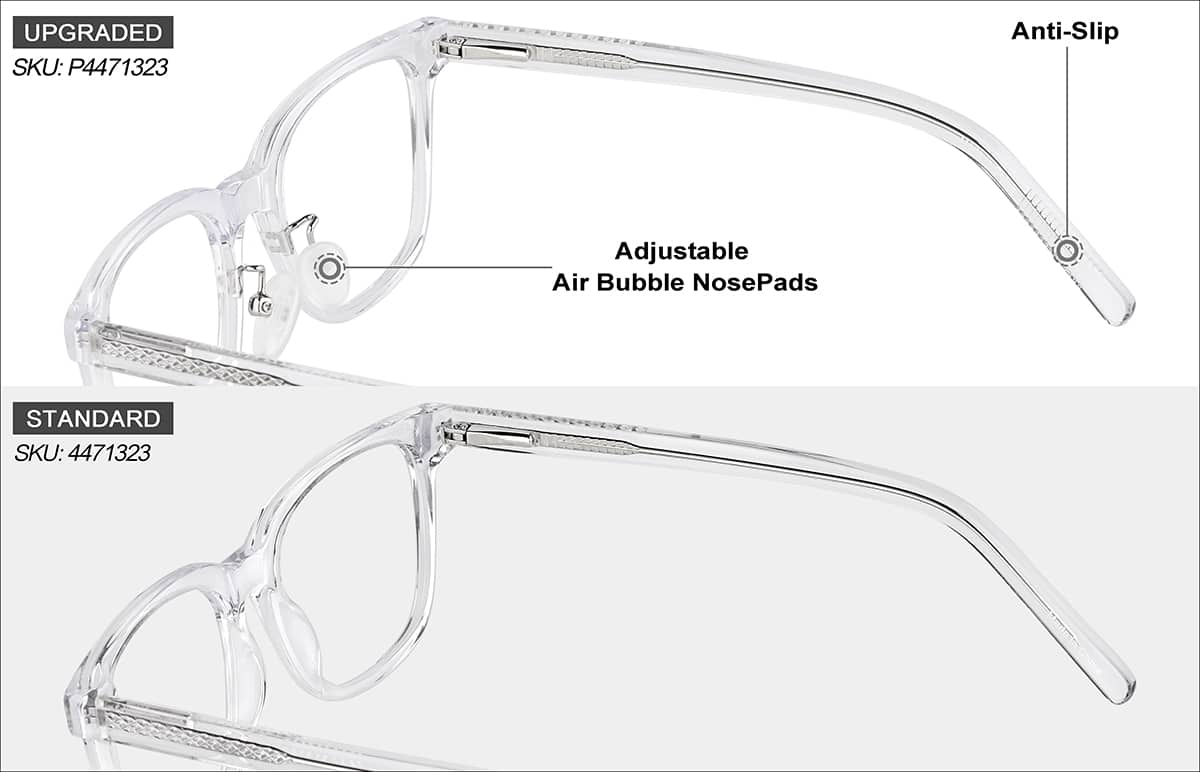 - Design: With a lightweight construction and hand-crafted acetate design, this style includes a keyhole bridge and gooseneck nose pad hardware. Designed temple core wires and tip detailing elevate the look on transparent models.