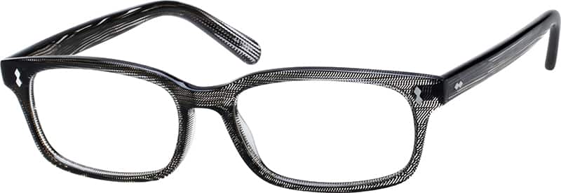Easy returns with industry-leading customer satisfaction.Here’s a frame that will definitely get a lot of double-takes with its intriguing design. The acetate frame is translucent gray with a black micro-dot pattern that creates a cool, striped appearance when viewed from the side. The effect is subtle but eye-catching. This medium-narrow frame features silver diamond-shaped accents on the corners and temple arms. For the same frame with a different size, check out 4417831.