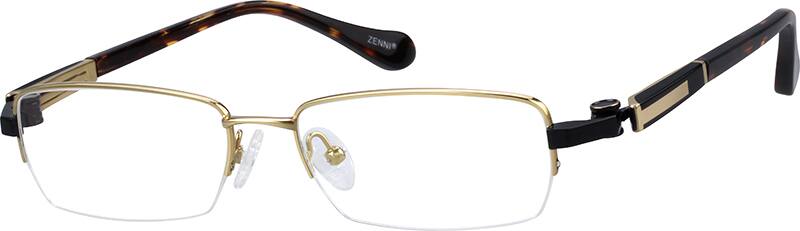 Easy returns with industry-leading customer satisfaction.This titanium, half-rim frame has plenty of panache with two-tone, metal embellishments on the temple arms. They feature spring hinges and adjustable silicone nose pads for added comfort.