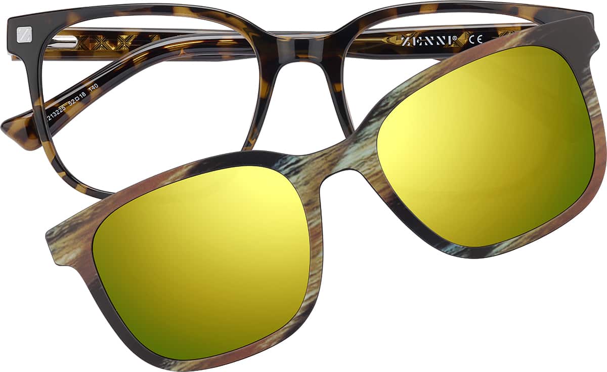 Tortoiseshell Square Clip-on Sunglasses #99117725