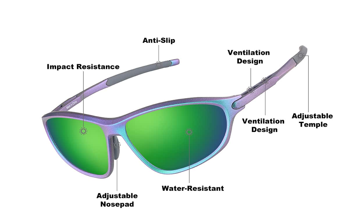 Helps prevent lens fogging for clear vision in all conditions.- Design: This full-rim wrap-around frame is made from durable TR90 material, giving you lightweight strength that’s built for action. Ventilation along the temples helps keep airflow moving, while slip-free nose pads and temple tips offer reliable stability during high-energy activities.