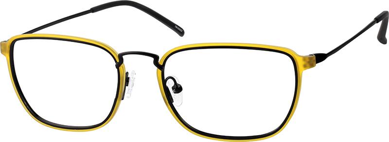 A classic style gets a modern makeover with a layered construction. These striking rectangle glasses feature a metal frame with a matte TR90 overlay on the front rim. Available in yellow, gray, and forest green, this medium-wide frame features thin, flexible temple arms for a stylish profile. Adjustable nose pads provide added comfort.