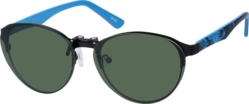Black Stainless Steel Full-Rim Frame with Acetate Temples and Polarized Magnetic Snap-on Sunlens #541821