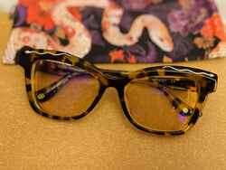 These cat-eye shaped frames showcase the artistry of premium, hand-crafted acetate, offering a luxurious feel with long-lasting durability. The faceted fronts enhance the depth and dimension of the design, while intricate snake-inspired gold details adorn the front creating a striking visual effect.