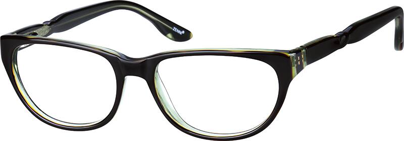 Easy returns with industry-leading customer satisfaction.These oval, acetate frames have a twist detail on the temple arms. The eyeglasses are on the smaller side and come in two color options: black with a pink/green pattern on the arms, or green tortoiseshell.