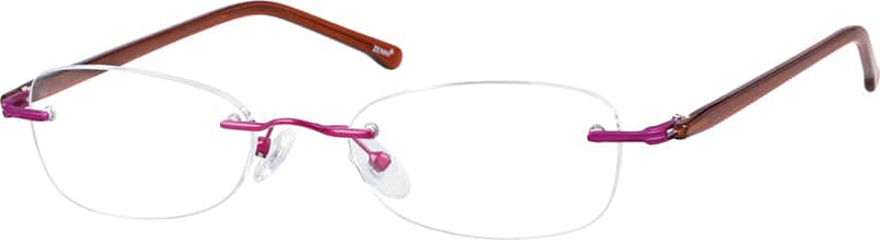 Easy returns with industry-leading customer satisfaction.Light and delicate-looking, these rimless eyeglasses are a lot sturdier than they appear. Shown with lens shape 358, this frame is available in two color options: gold bridge and hinges with blue temple arms, or metallic magenta pink bridge, hinges and temple arms. Adjustable silicone nose pads provide added comfort.